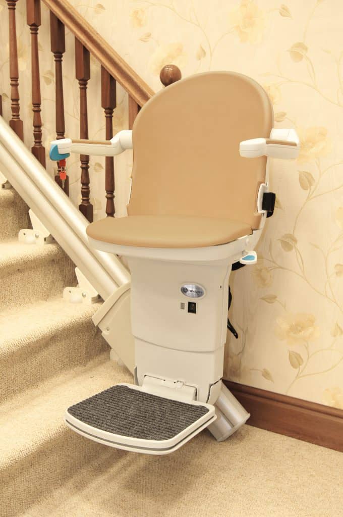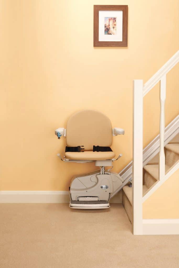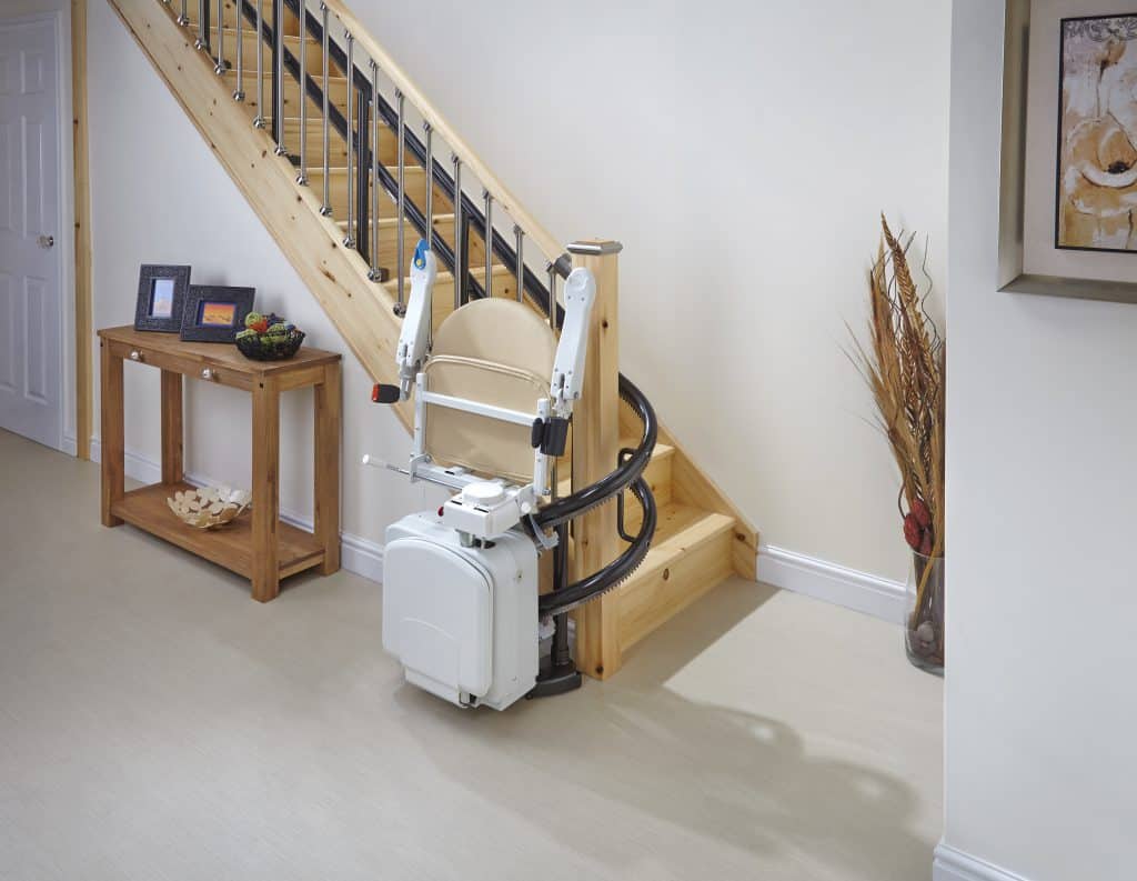There are different styles of stair lifts to fit any type of staircase in your home. Straight lifts are designed to fit a straight staircase. There is usually only one rail, and it’s attached opposite the banister. These are the most common type of stairlift available on the market! Curved stairlifts are custom made to fit the curves and angles of your staircase, and the chair is designed to stay level.